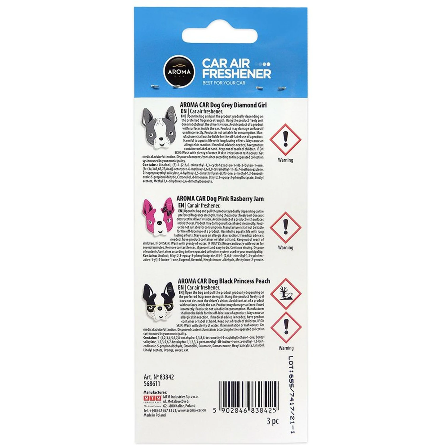 Aroma Car Love Pets Series Bulldog Air Fresheners & Dog Deodorizer, 3 Count