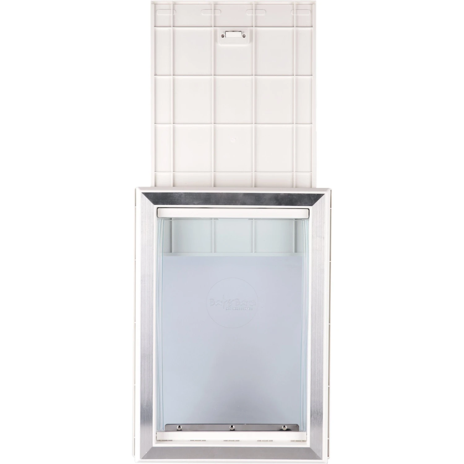 - Removable self-locking slide panel allows you to control when your dog can use the door.