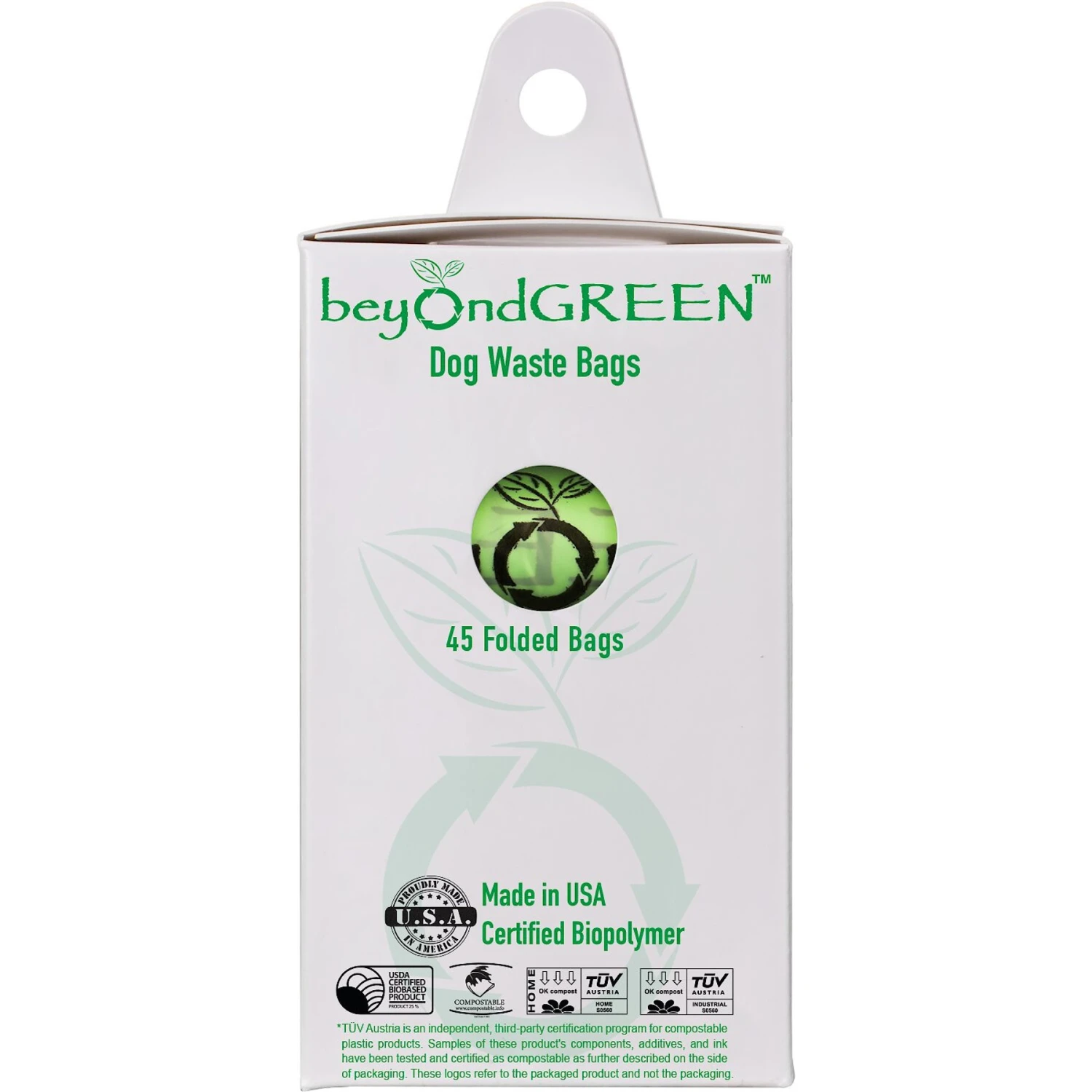 - beyondGREEN bags are Certified by USDA, TUV OK HOME Compost and OK Compost Industrial as per EN 13432 (European Standard), BNQ, and are also approved by Compost Manufacturing Alliance.
