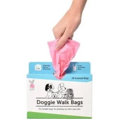 Doggie Walk Bags Citrus Scented Tie Handle Dog Poop Bags, Pink