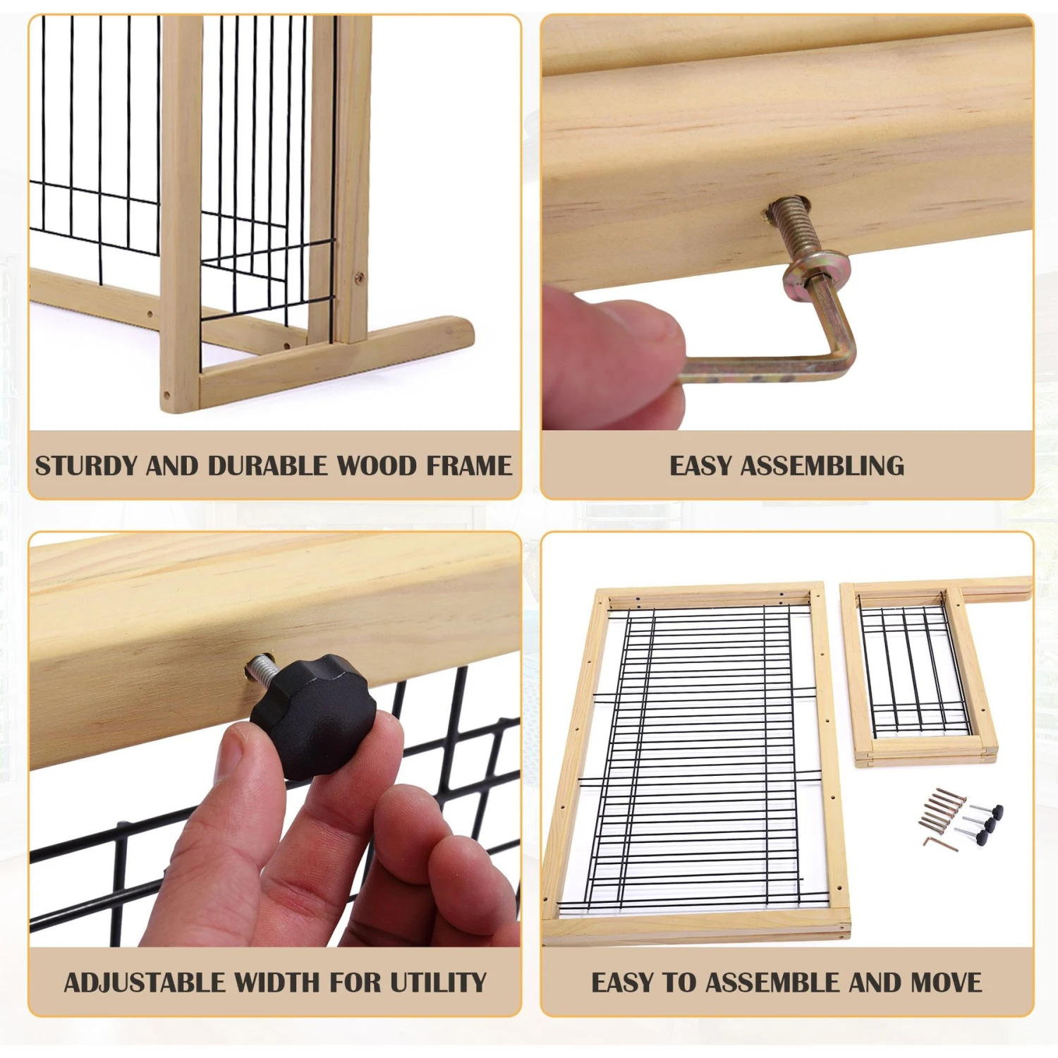 Coziwow 21-in Adjustable Extra Wide Freestanding Dog Gate, Natural Wood