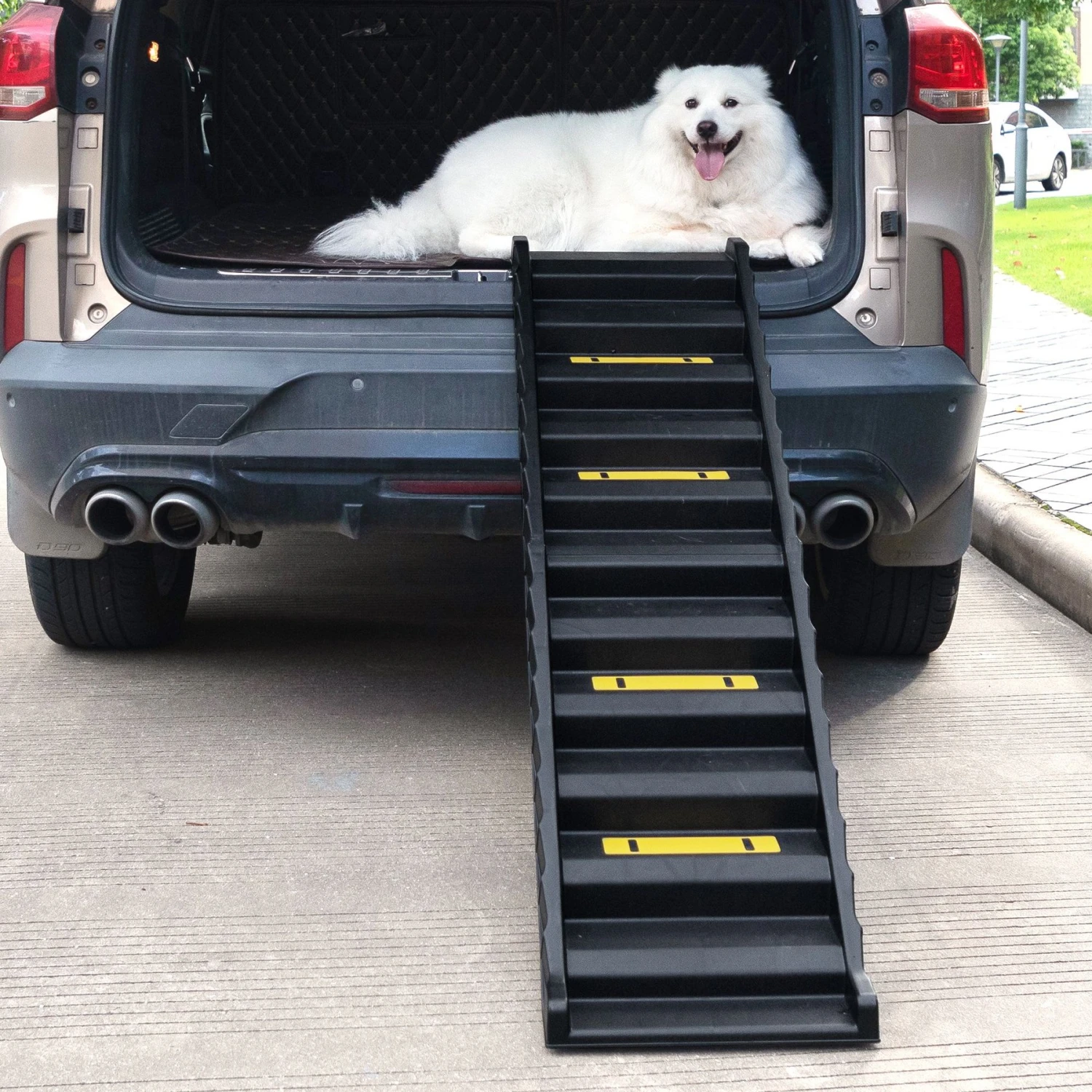 Coziwow Foldable Dog Car Ramp With Stairs, Black, 61-in