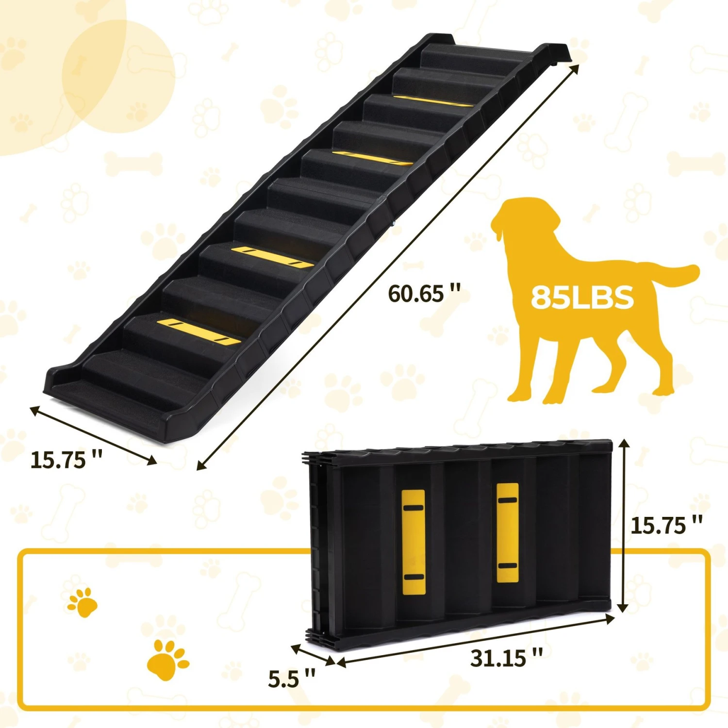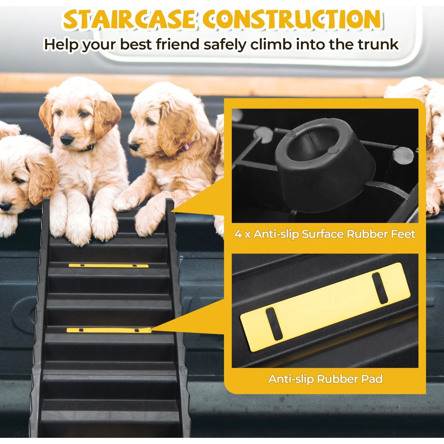 - Bright yellow anti-slip mat on the surface ensures your furry friend can climb safely.
