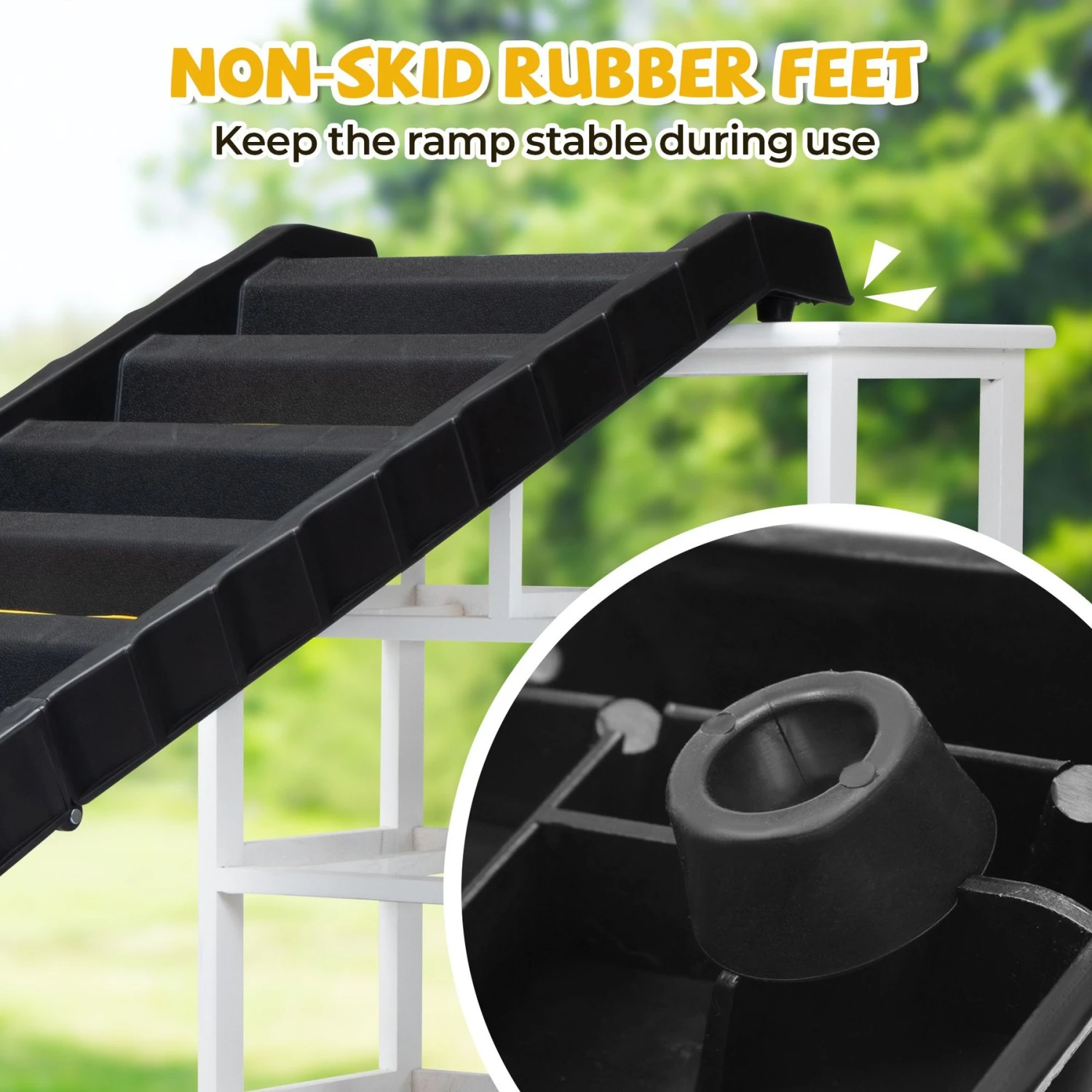 - Non-slip rubber pads on the bottom of the ramp provide extra stability.