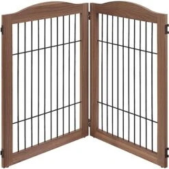 Unipaws 4 Panel Wire Mesh Dog & Cat Gate With Small Pet Door, Walnut, Large