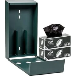 - Each waste station includes a bag dispenser that stores 2 rolls of 200-count bags and a lidded waste receptacle.