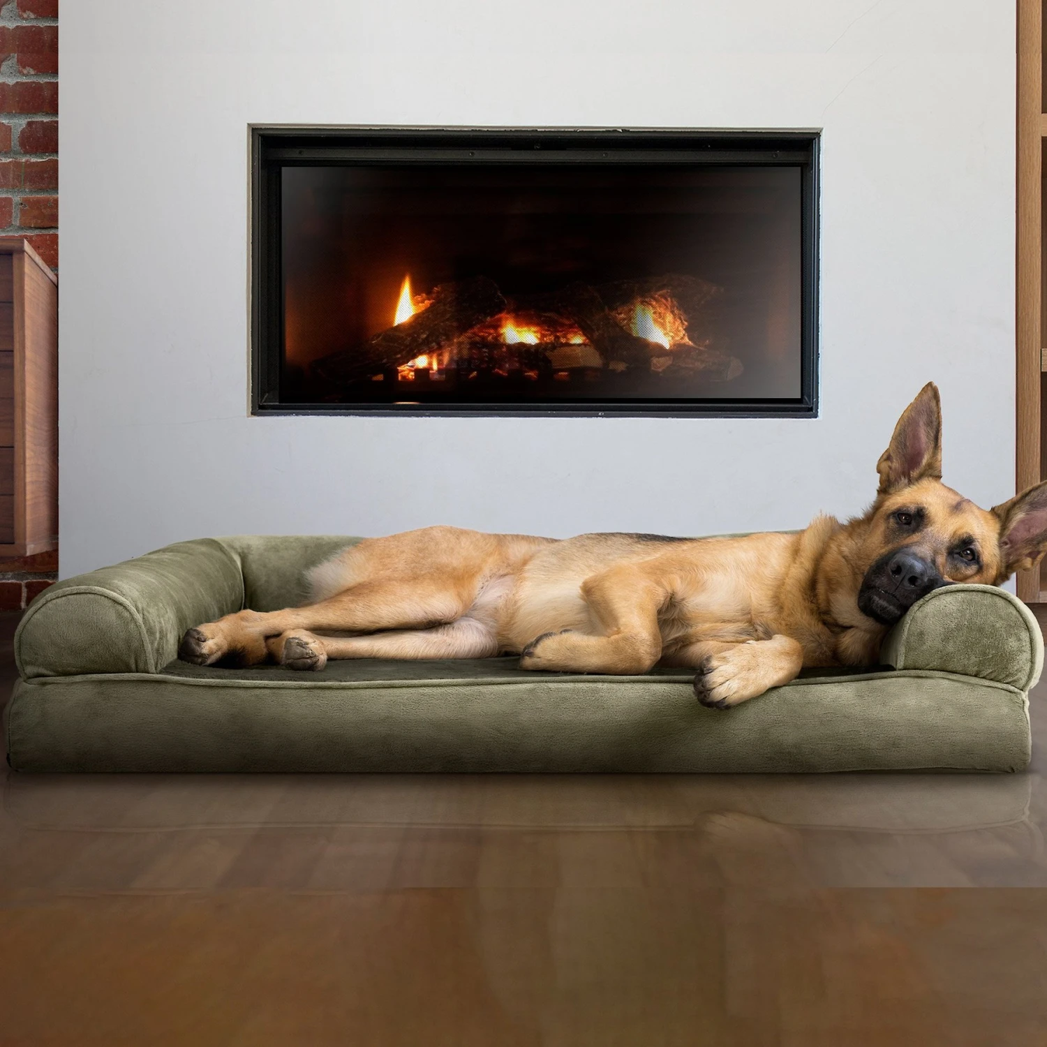 FurHaven Faux Fur Memory Top Bolster Dog Bed With Removable Cover