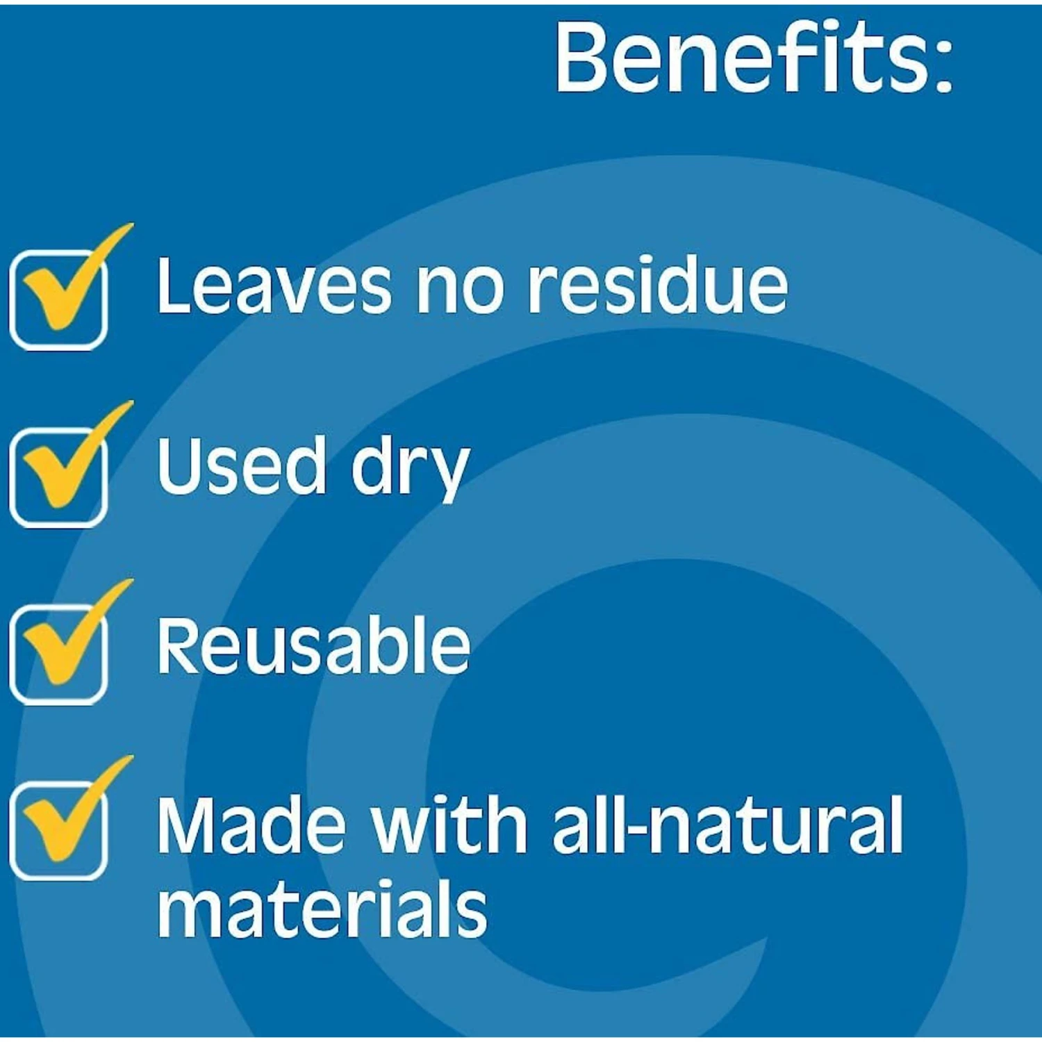 - Doesn’t need water and leaves no residue, so it’s safe to use on most fabrics and surfaces.