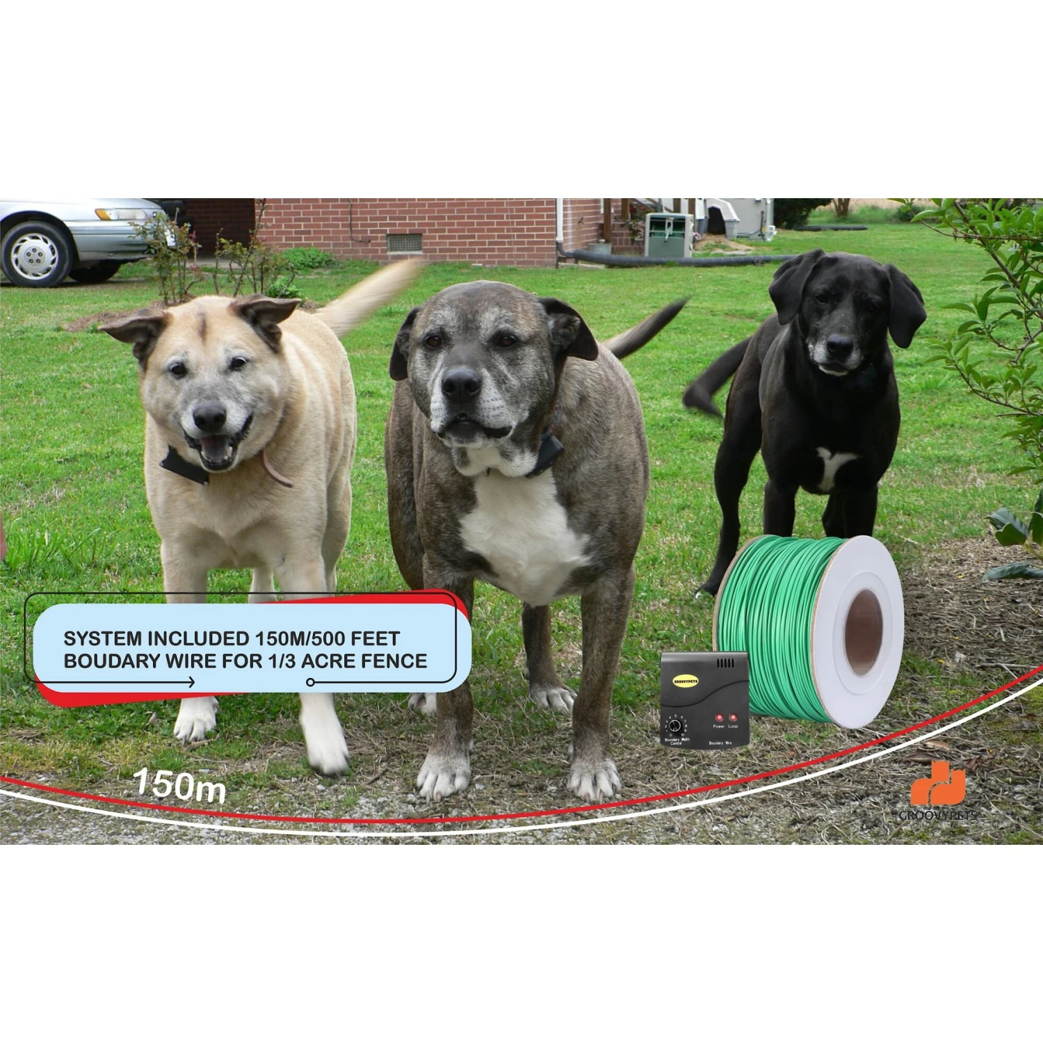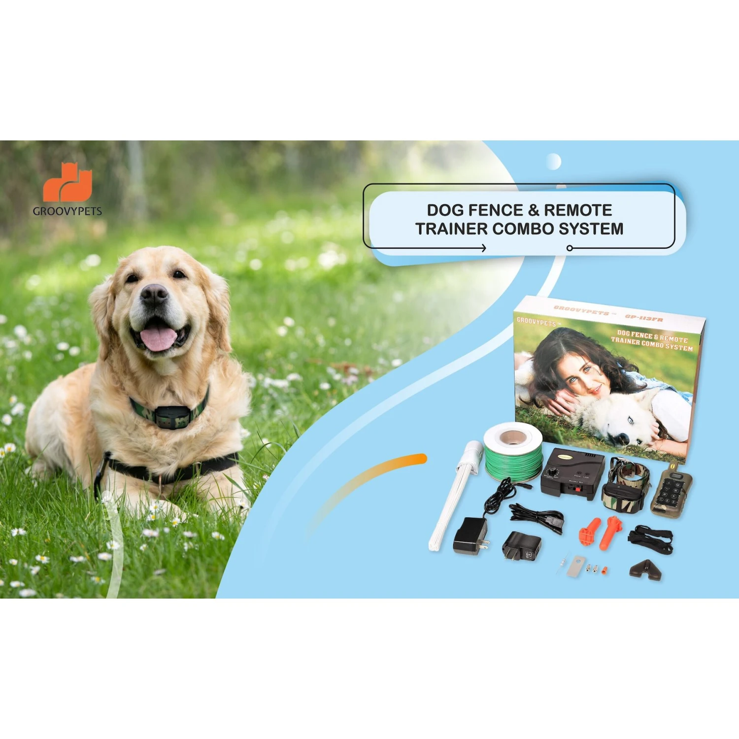 GROOVYPETS Remote Training Dog Collar & Inground Electronic Containment Fence System