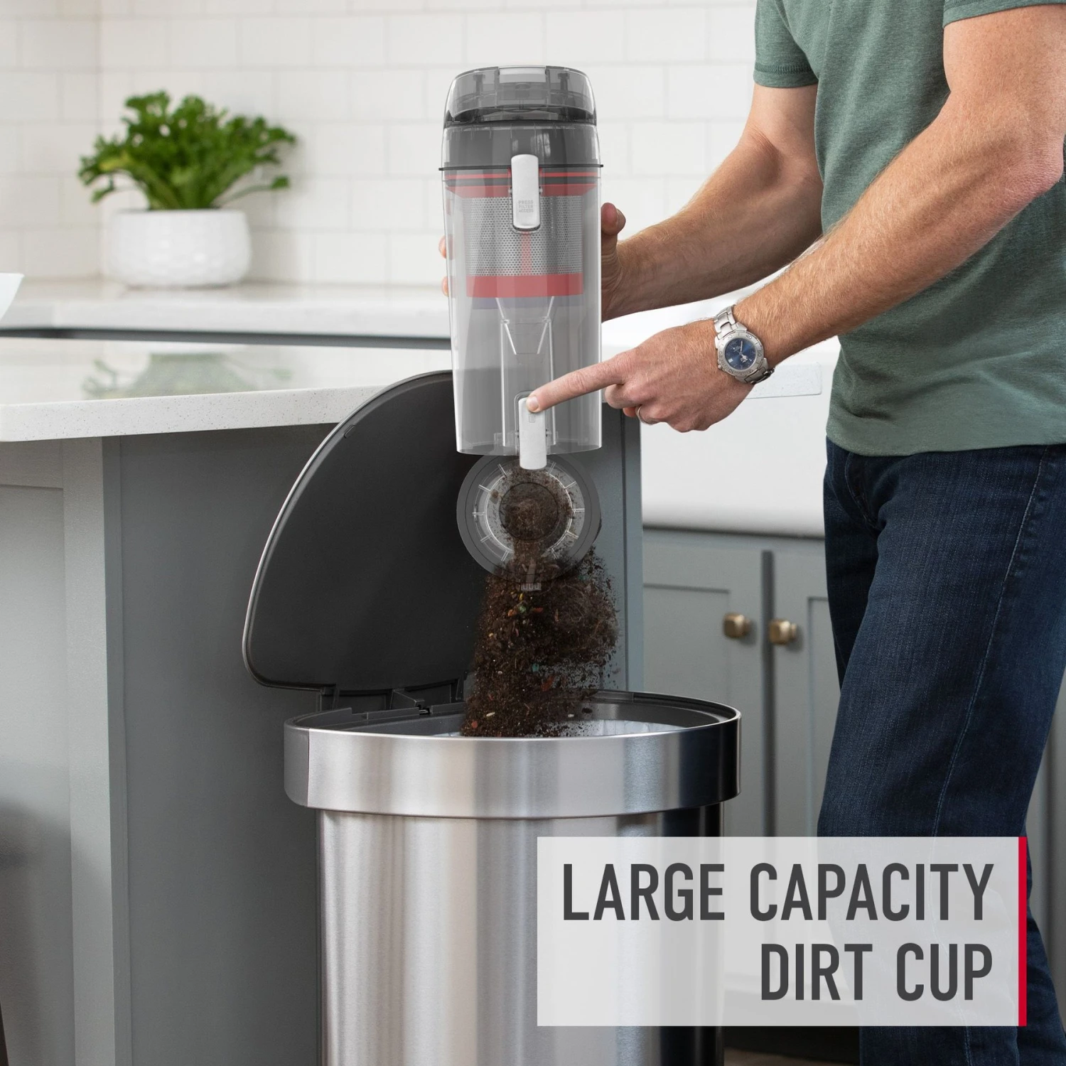 - Holds three times more dirt and pet hair with larger dirt cup capacity than a stick vacuum for less trips to the trash can.