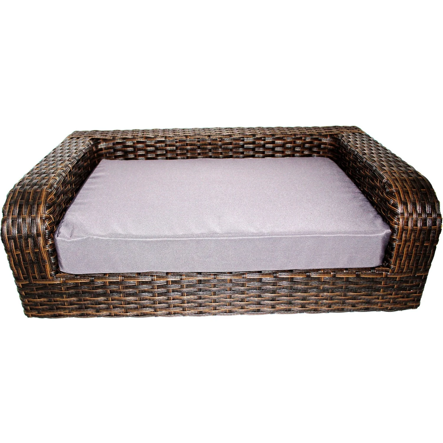 Iconic Pet Rattan Sofa Cat & Dog Bed With Removable Cover, Caramel & Mocha