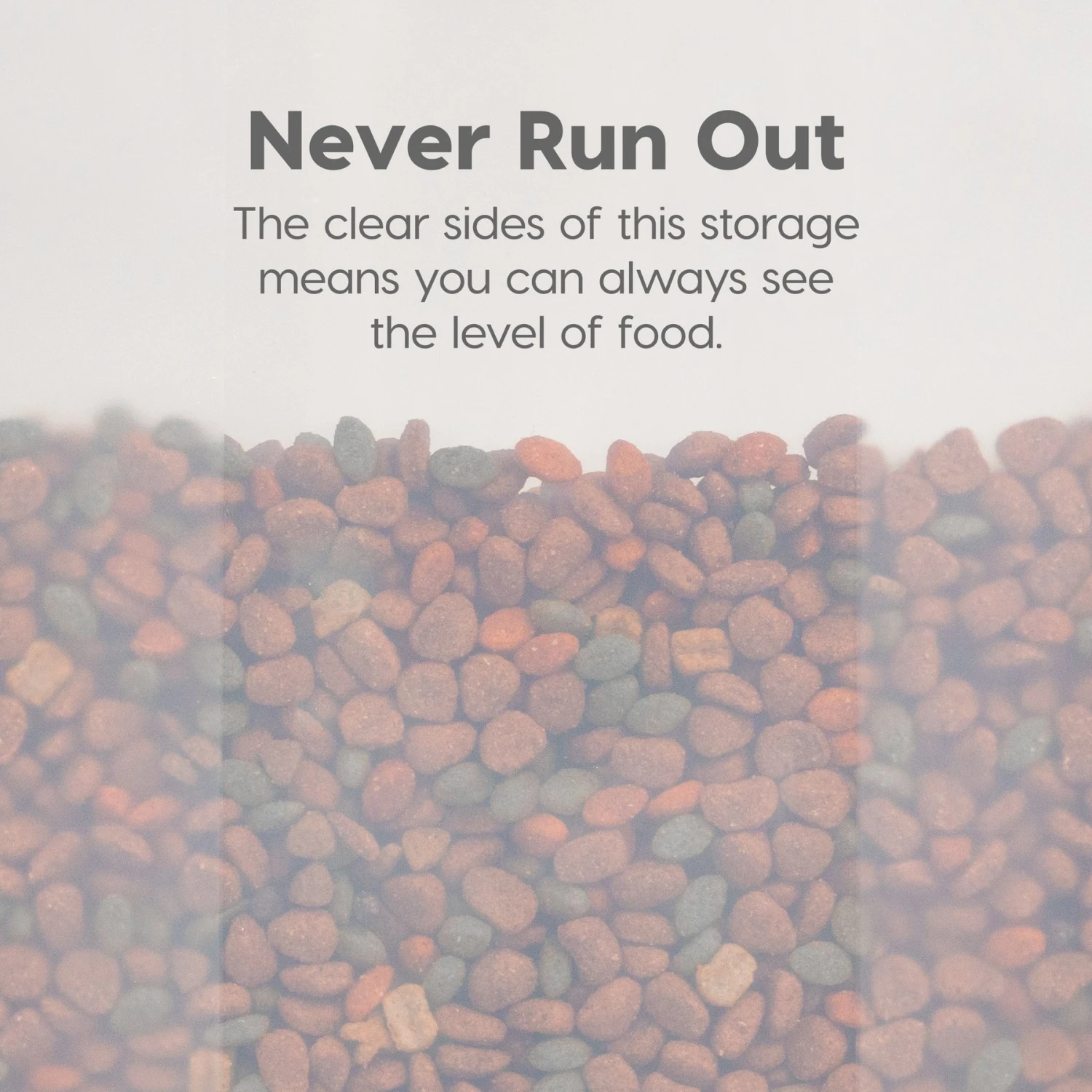 - Quickly check the remaining amount of pet food before you head out thanks to the translucent body.