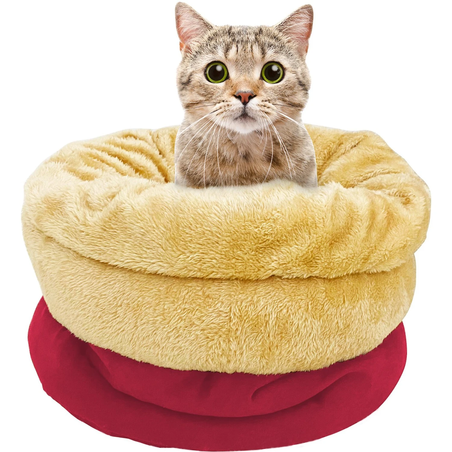 - 4-in-1 design—use it as a burrow or hideout, press it flat so your pet can use it like a mat, turn it into a cup or fur-lined nest, or use it as a pod, which is similar to the cup but has microfiber lining.