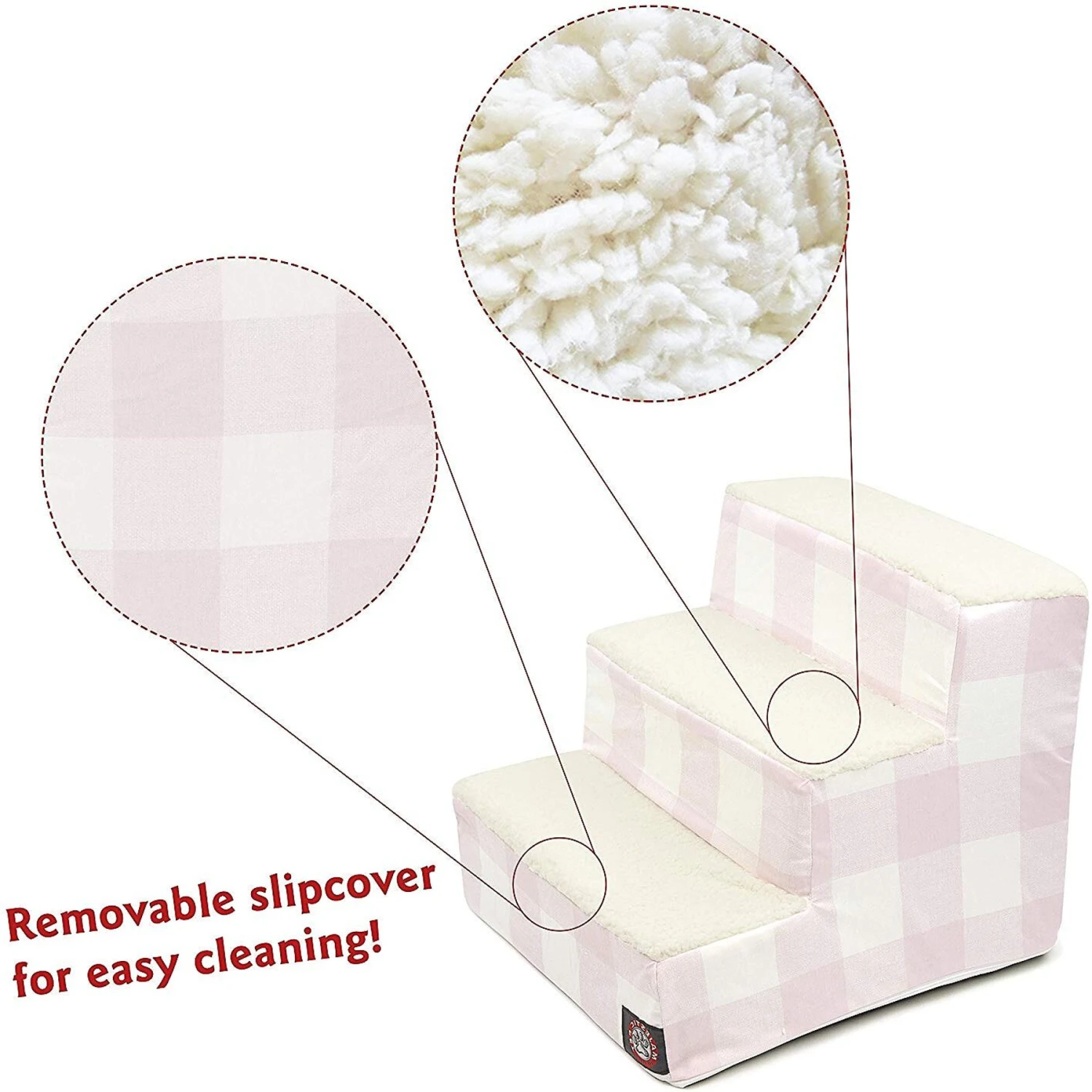 - Features a classic check-pattered slipcover with sherpa-cushioned steps.