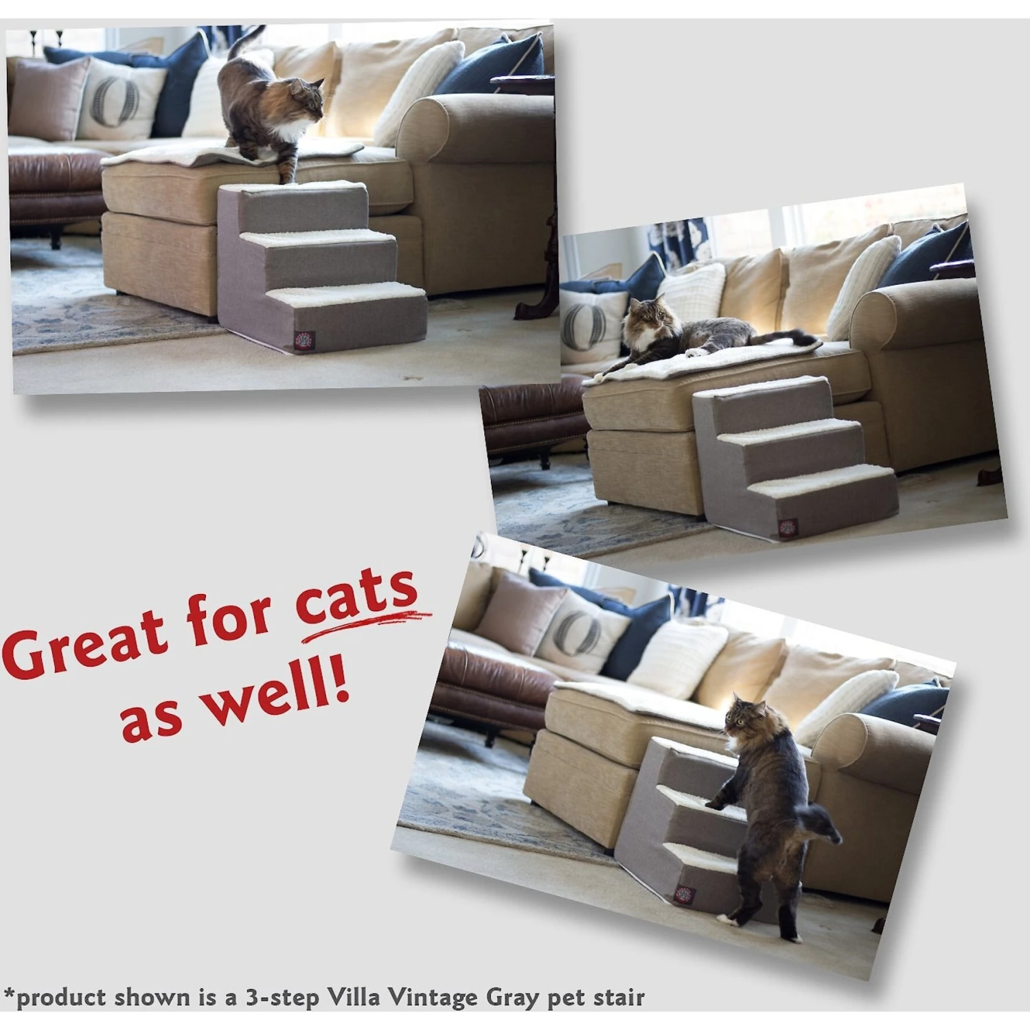 - Give your pet a boost with stairs that help her access hard-to-reach areas.