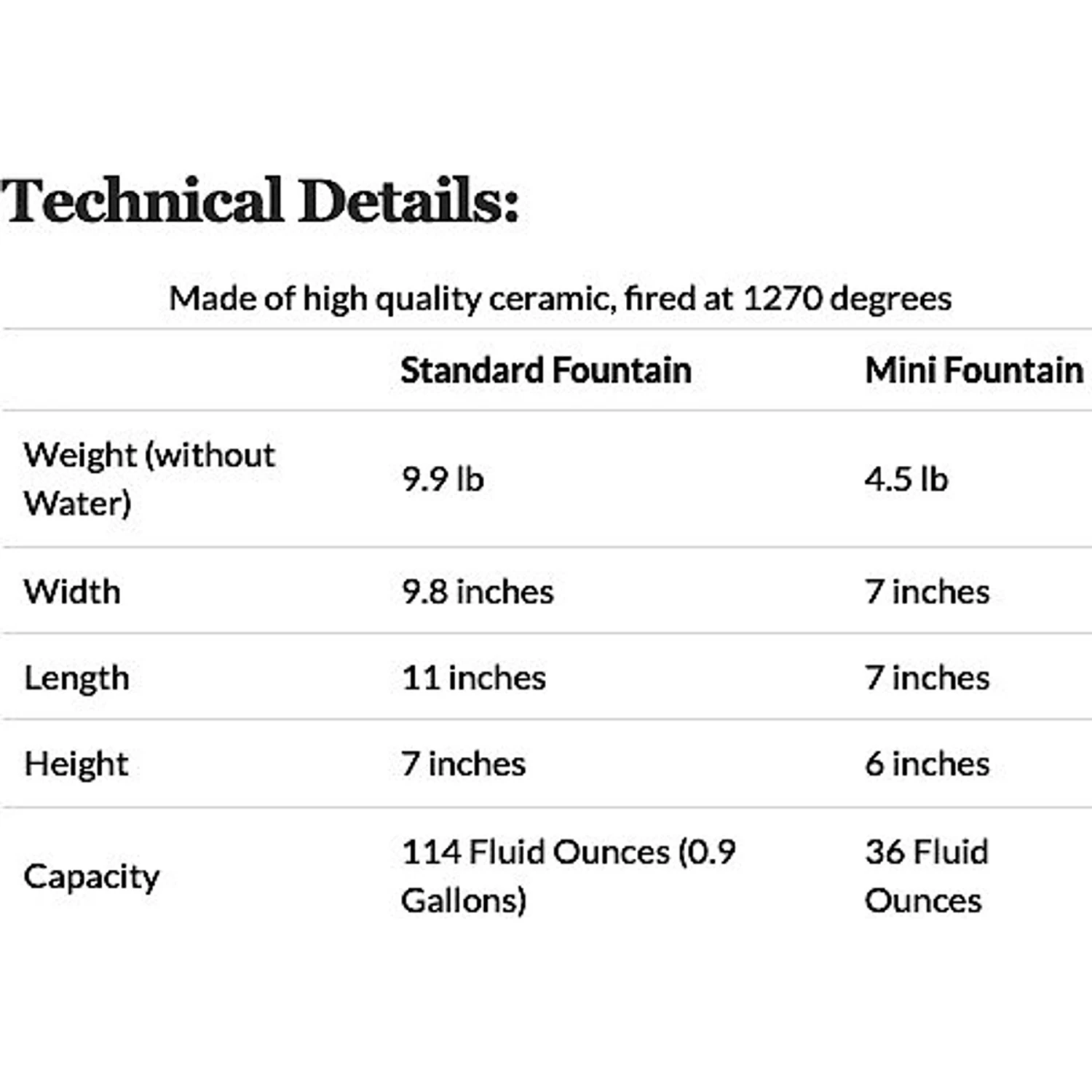 - Ceramic fountain requires no filter, so you don’t have to worry about remembering to replace one.