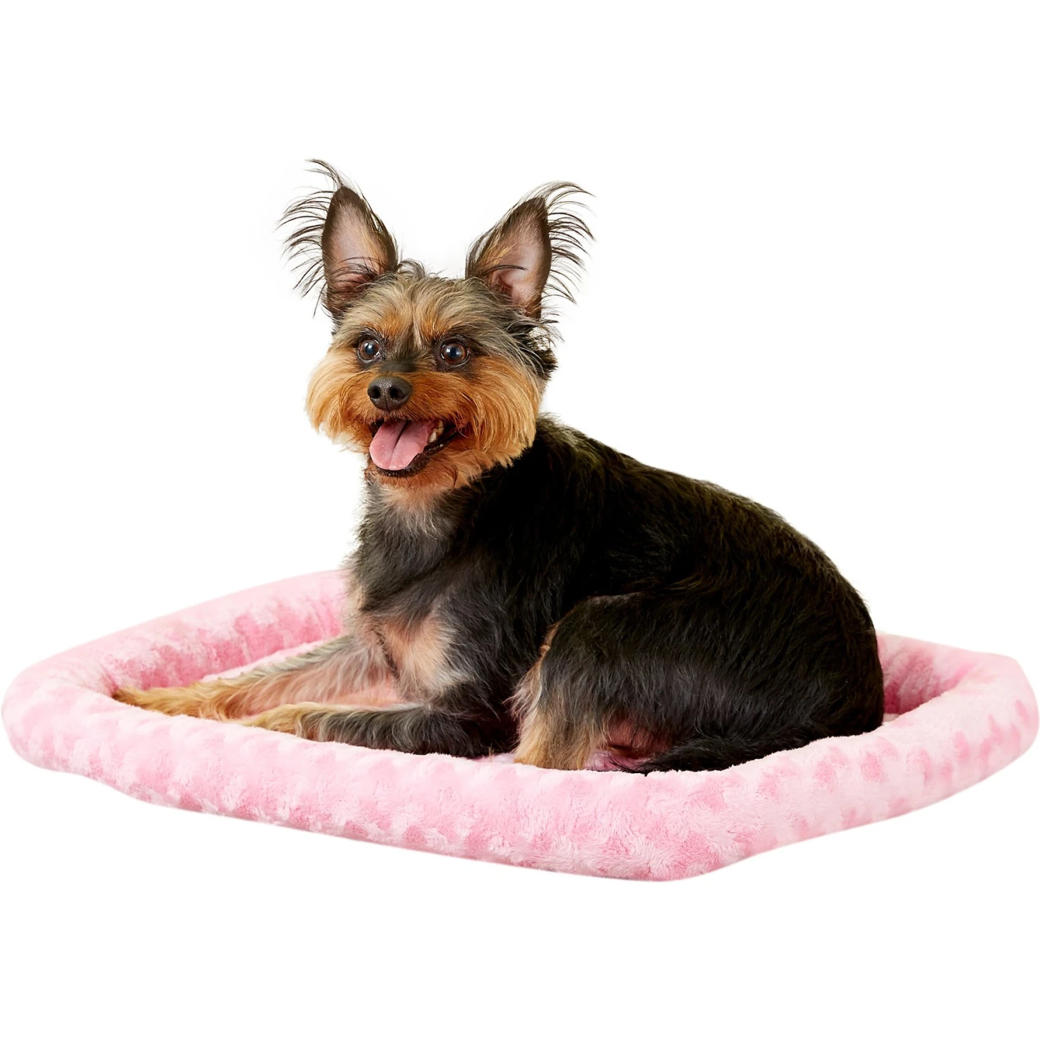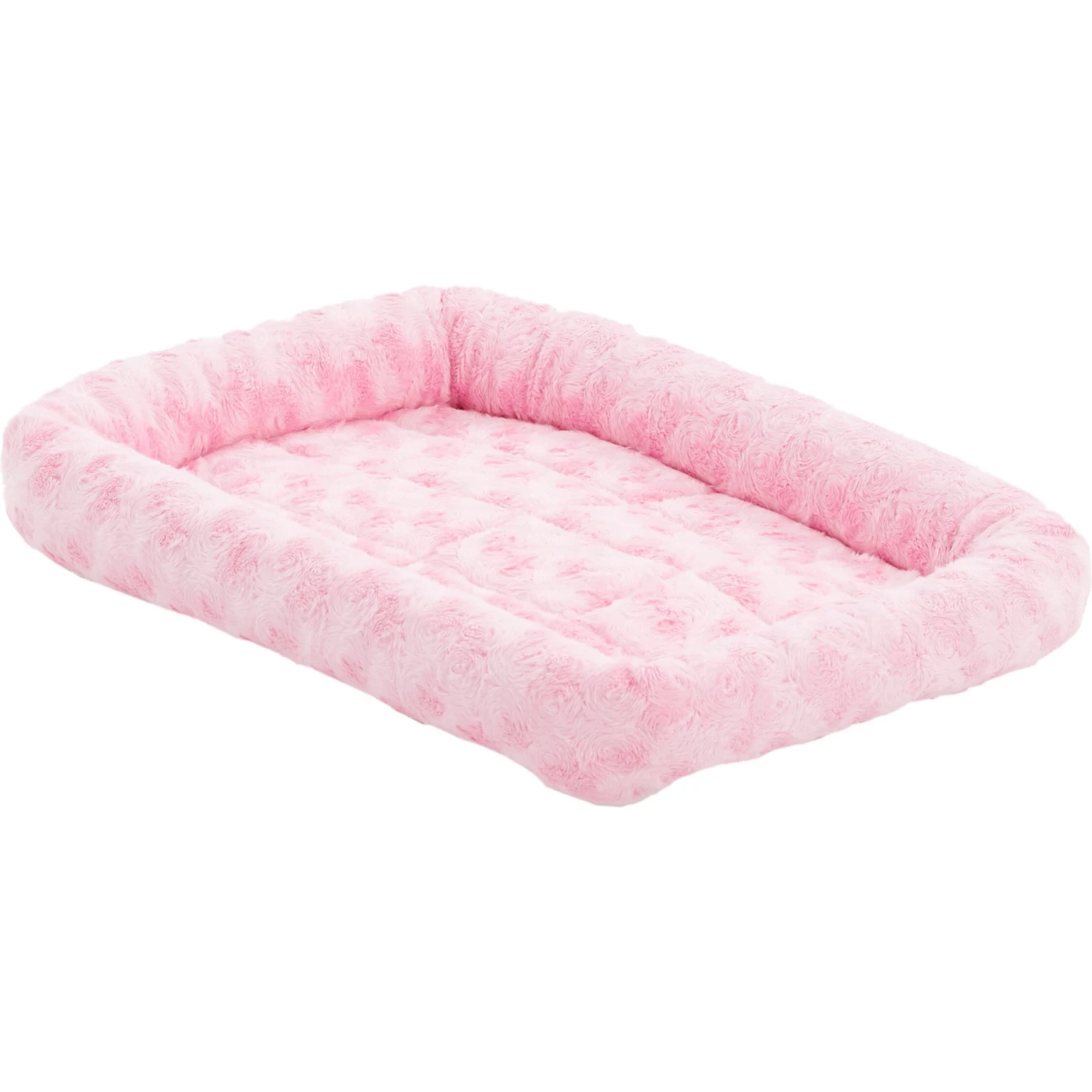 MidWest Quiet Time Fashion Plush Bolster Dog Crate Mat, Pink
