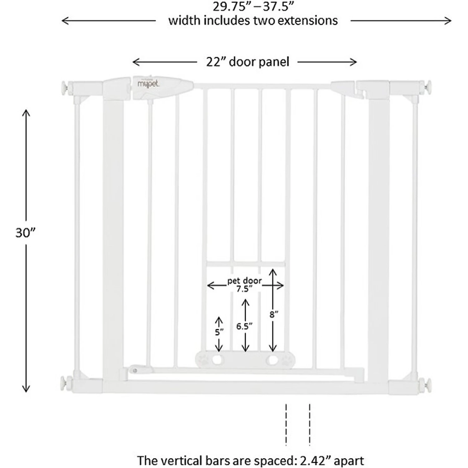 MyPet Wide Walk Through EasyPass Pet Gate, 30″ High – White