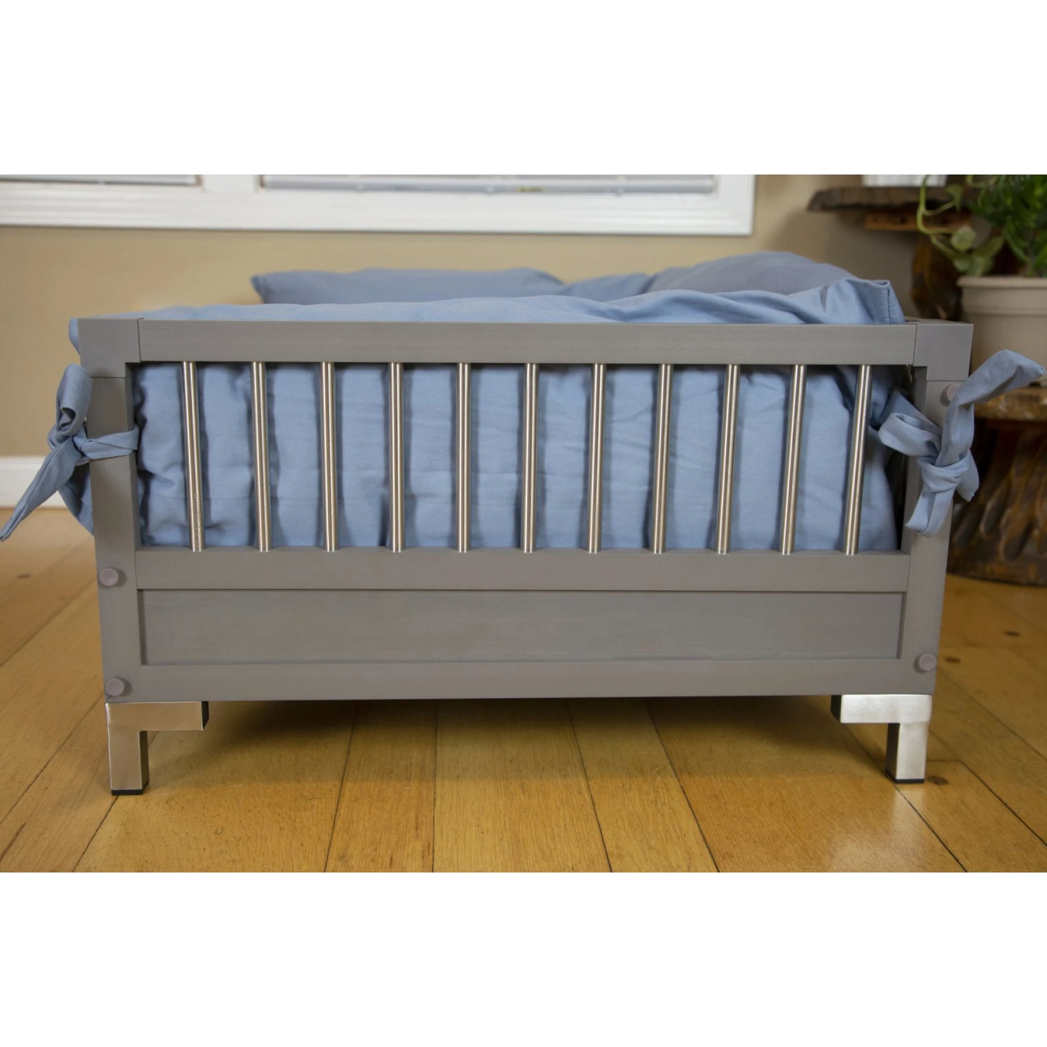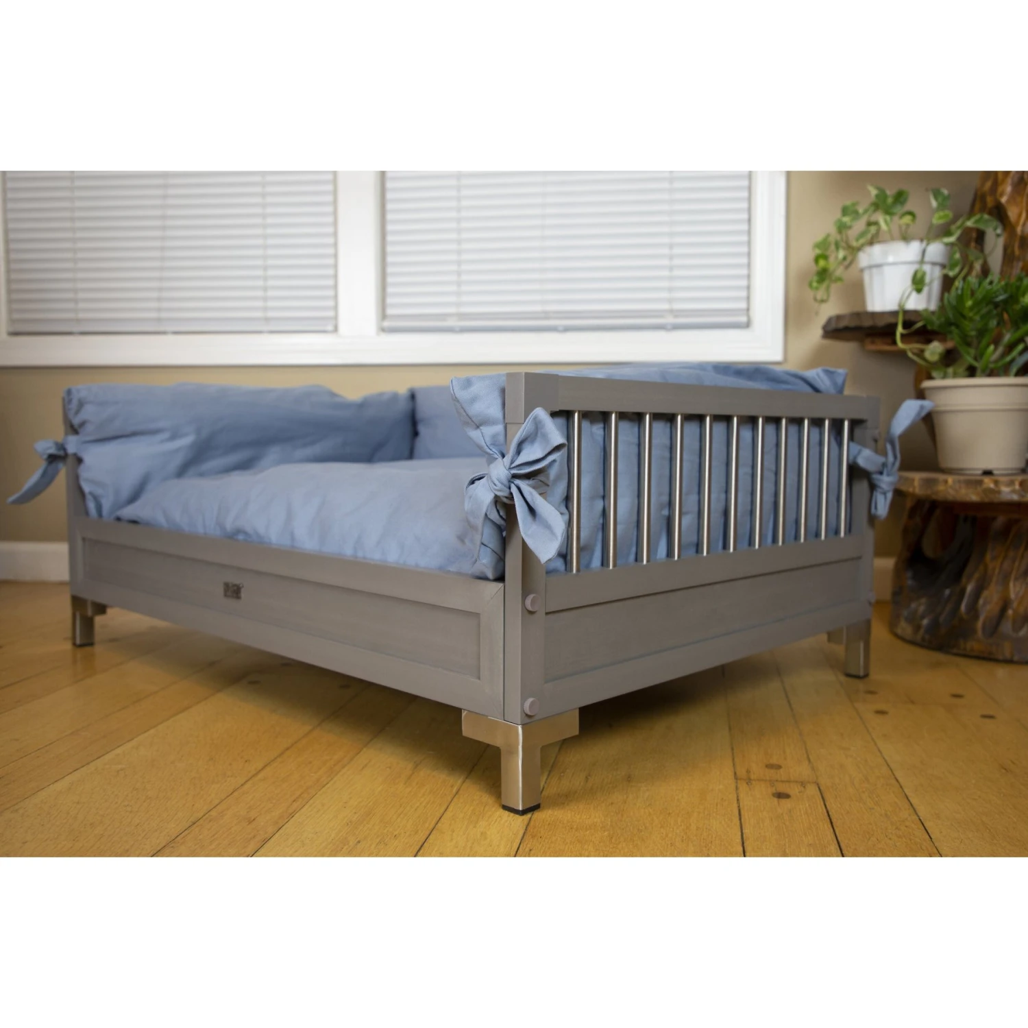 - Stainless steel legs elevate the bed for cool ventilation.