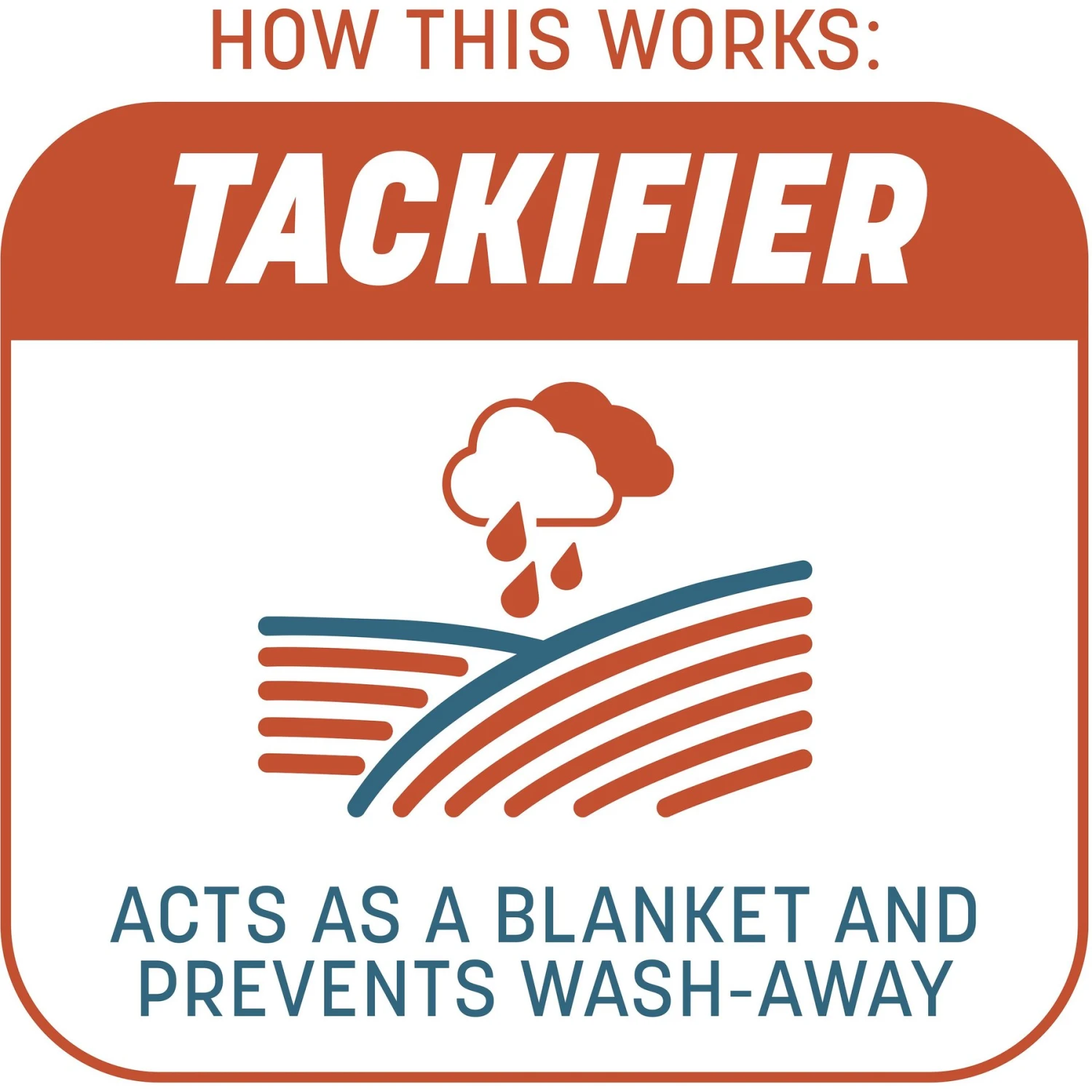 - Contains a tackifier that acts like a blanket, protecting your seed from washing away, even on slopes and hills.