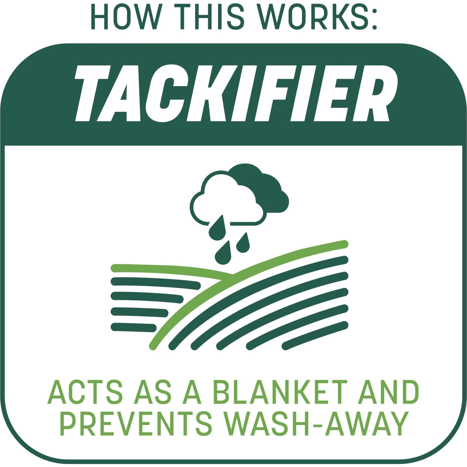 - Contains a tackifier that acts like a blanket, protecting your seed from washing away, even on slopes and hills.
