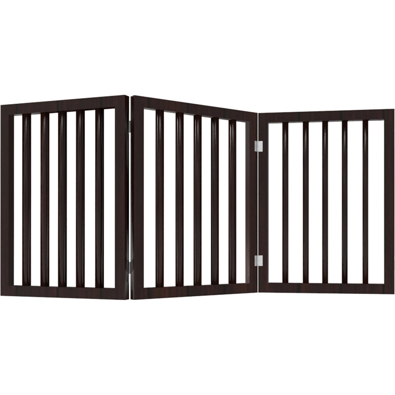 - 3-panel pet gate will confine your dog, cat or puppy while you are away and folds down for compact storage.