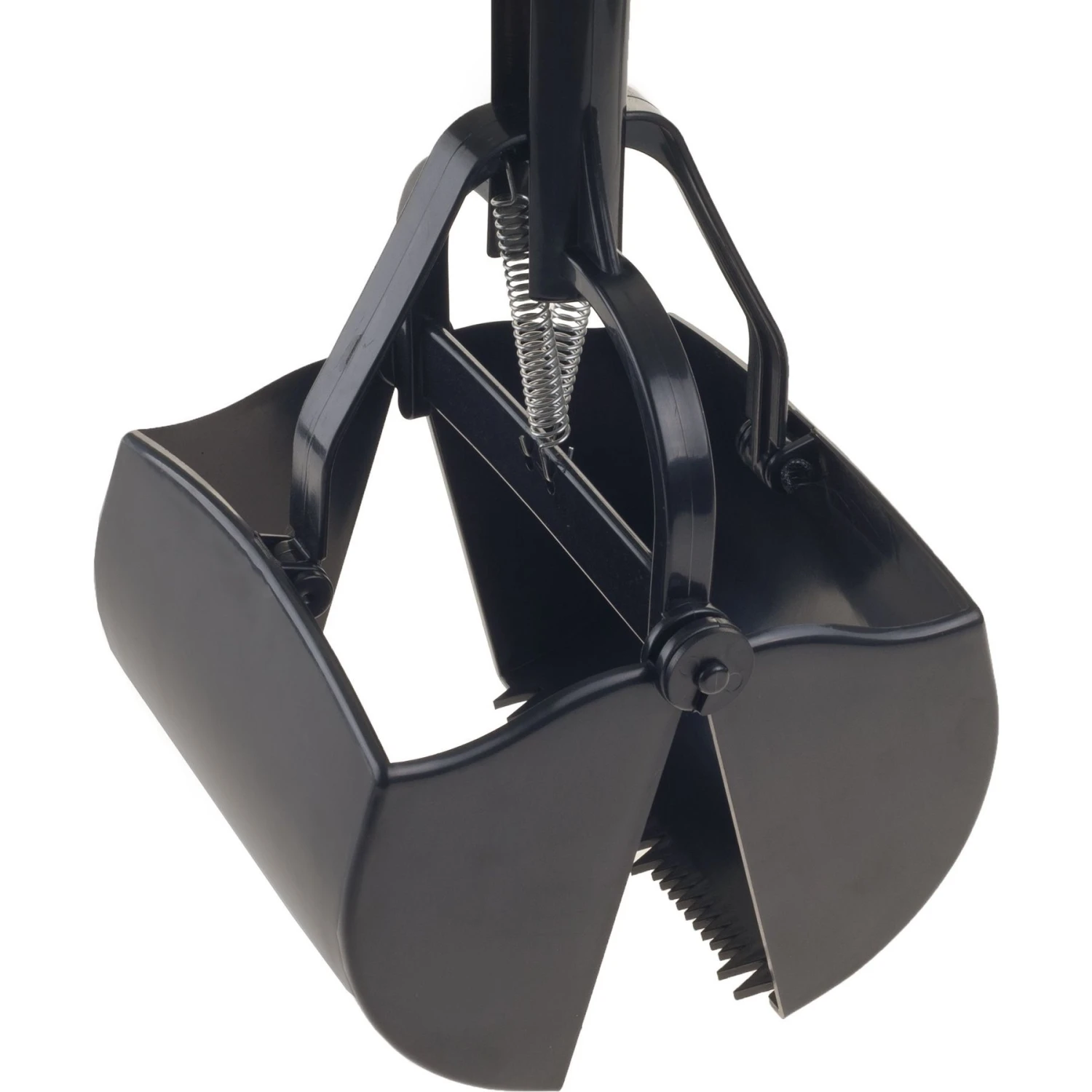- The long handle keeps you far from pet messes while the easy gripper operation and large scooper jaws let you pick up indoor and outdoor poop without ever touching it.