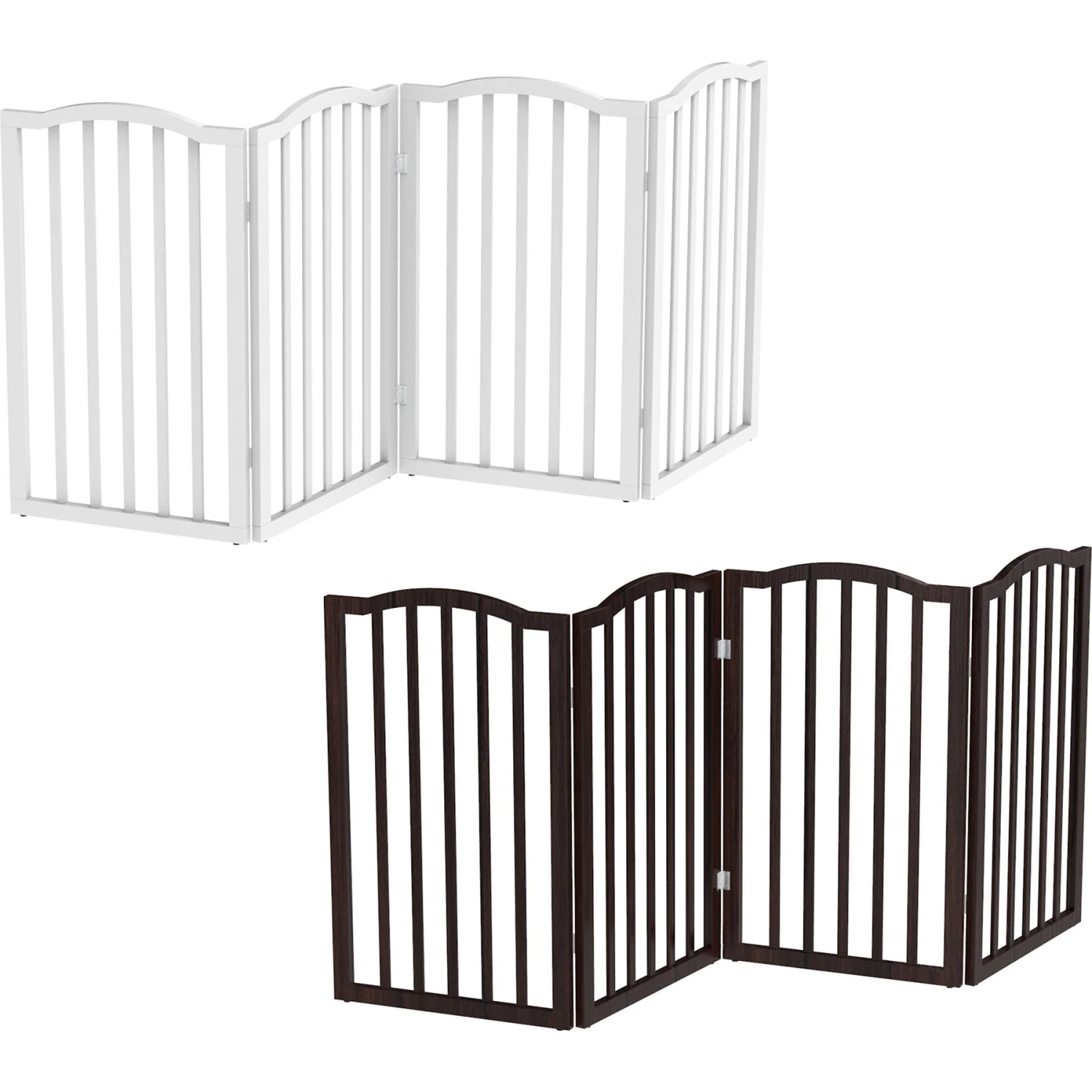- 4-panel pet gate will confine your dog, cat or puppy while you are away and folds down for compact storage.