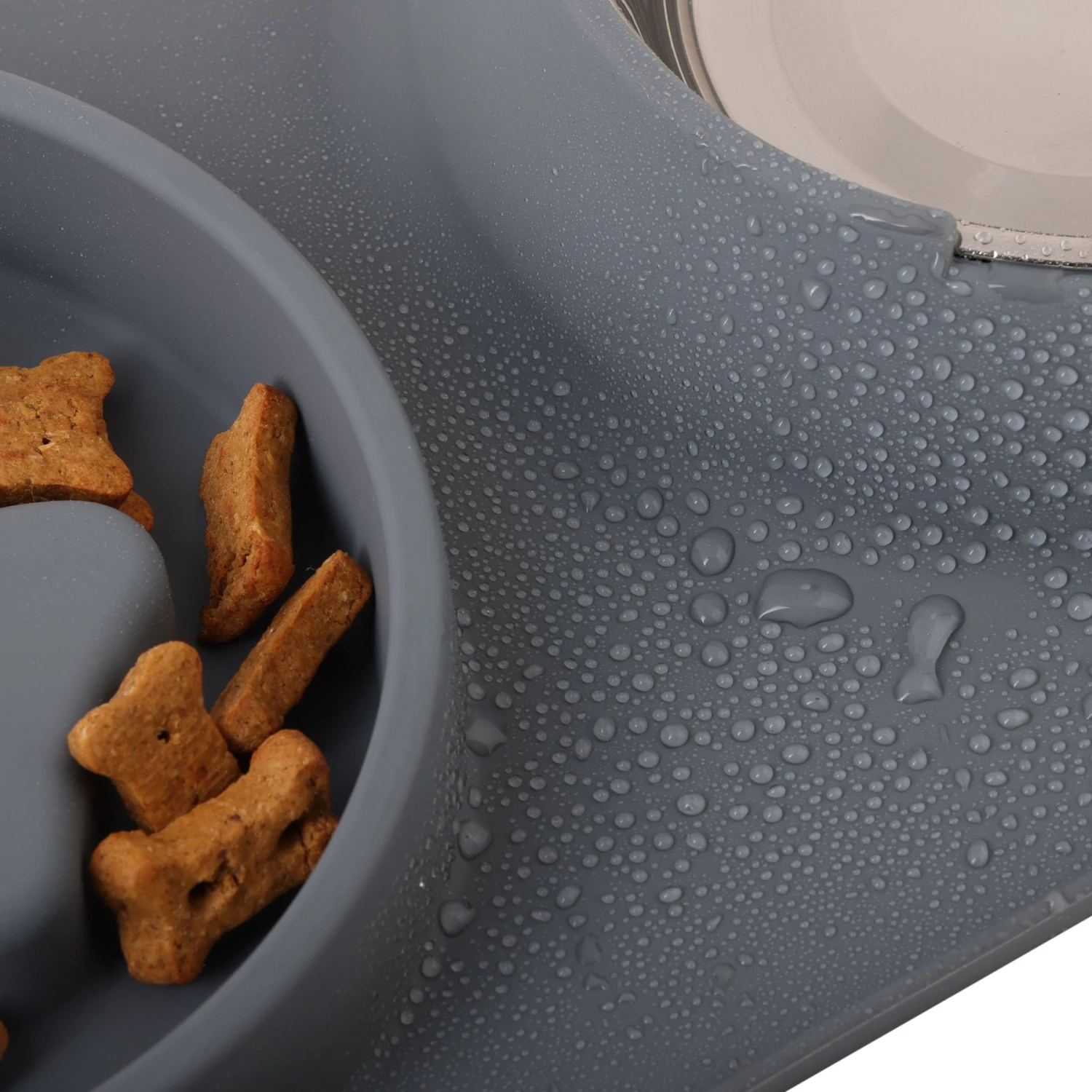 Pounce + Fetch Silicone Double Bowl Slow Feeder, 10-oz, Grey