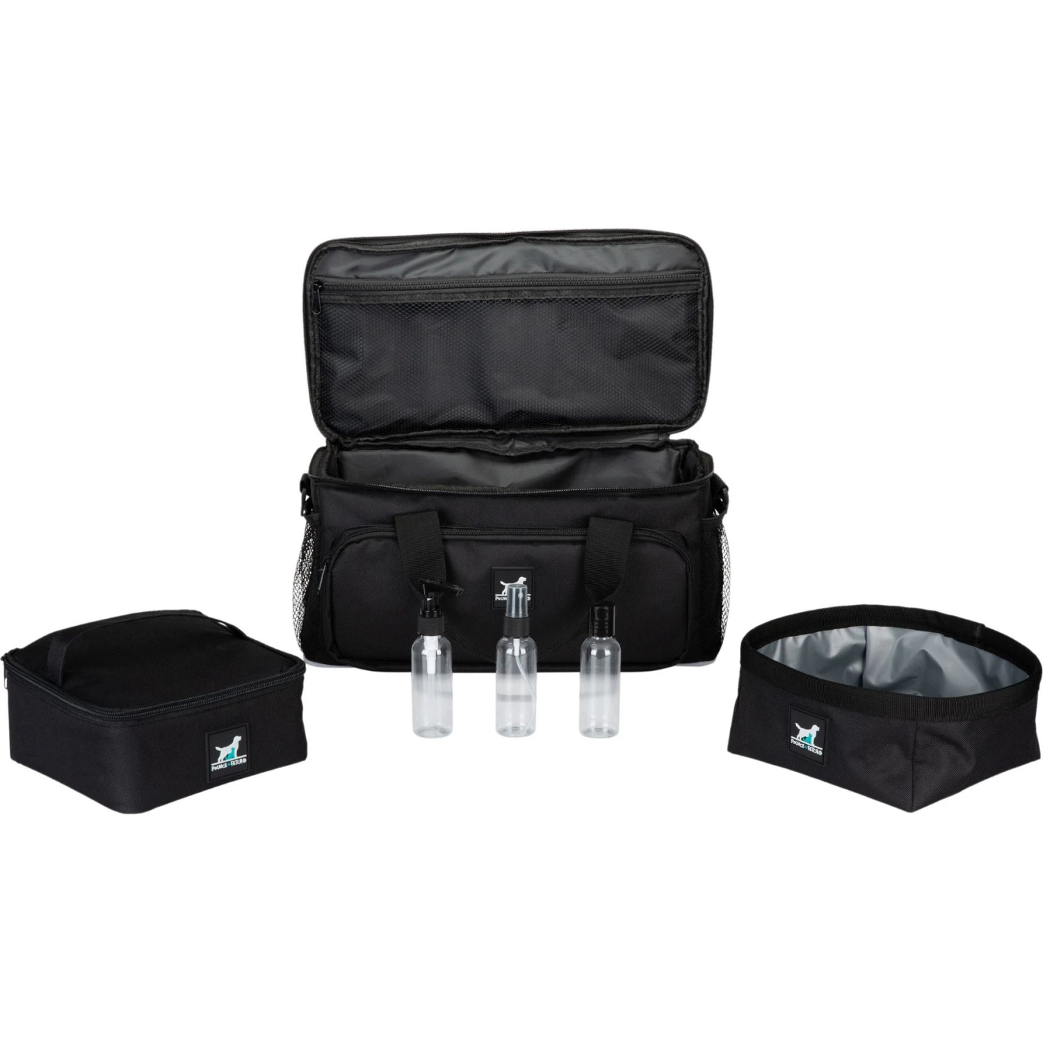 - 3-piece set includes an overnight bag, a foldable container with zippers and a foldable food/water container.