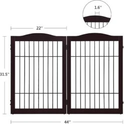 Unipaws 4 Panel Wire Mesh Dog & Cat Gate With Small Pet Door, Walnut, Large
