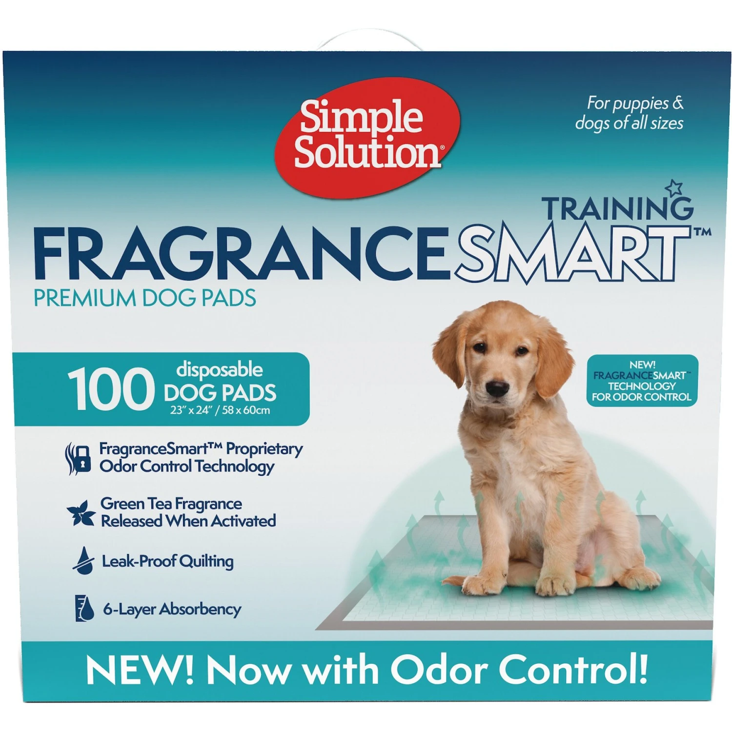 Simple Solution FragranceSmart Odor Control Green Tea Fragrance Odor Neutralizer With Wetness Indicator Puppy Training Pads, 100 Count
