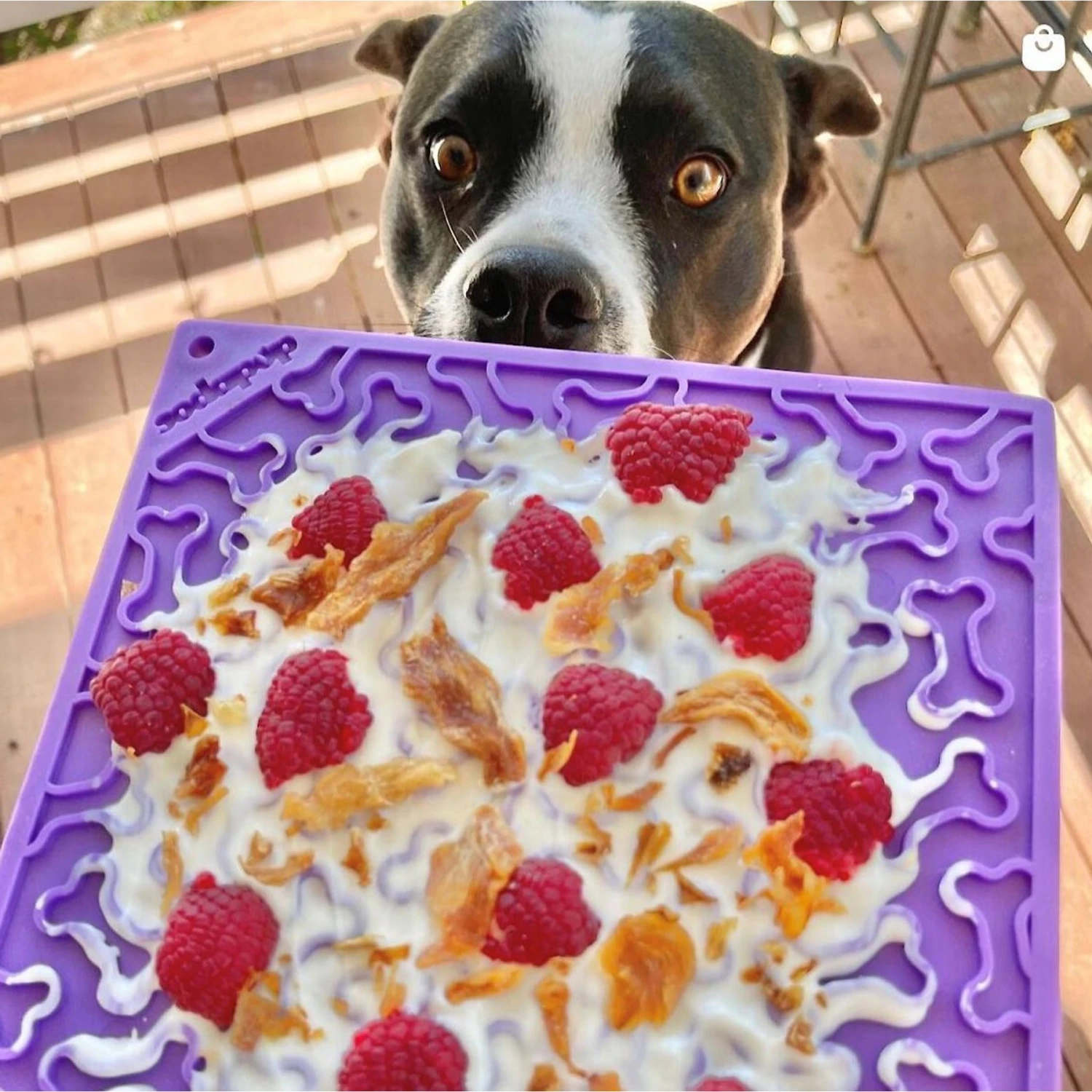 - Try filling the mat with peanut butter, canned food, cream cheese, plain yogurt, or spreadable goodies made for dogs.