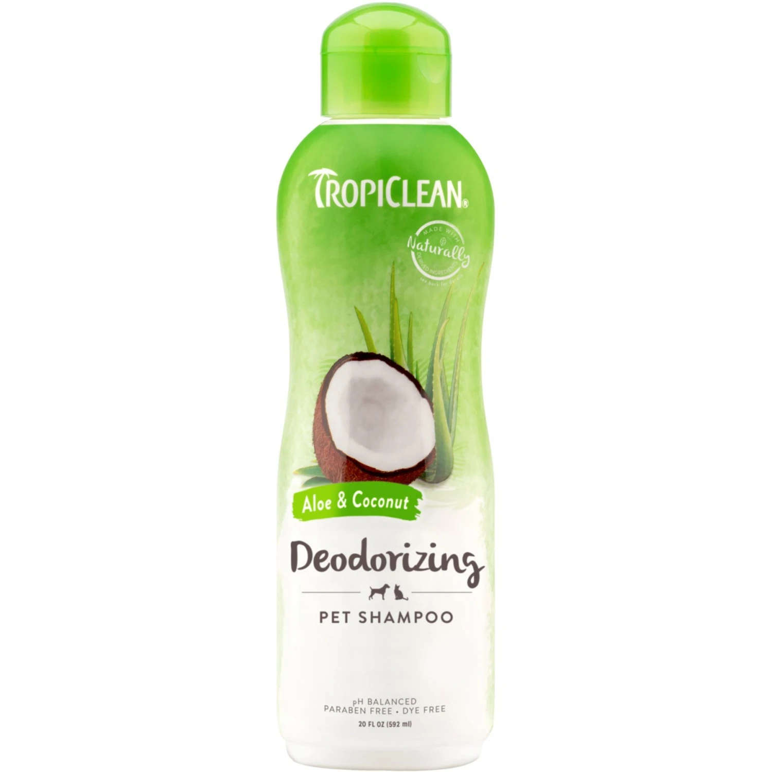 - TropiClean Deodorizing Aloe & Coconut Dog & Cat Shampoo, 20-oz bottle—This deodorizing shampoo works to eliminate pet odors with a long-lasting scent of aloe and coconut.