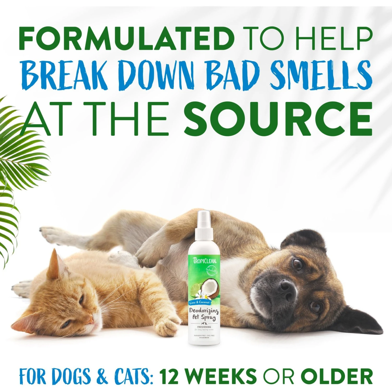 - TropiClean Lime & Coconut Deodorizing Dog & Cat Spray, 8-oz bottle—The moisturizing cat and dog cologne spray is derived from natural ingredients such as cocoa butter and botanicals for a silky soft coat.