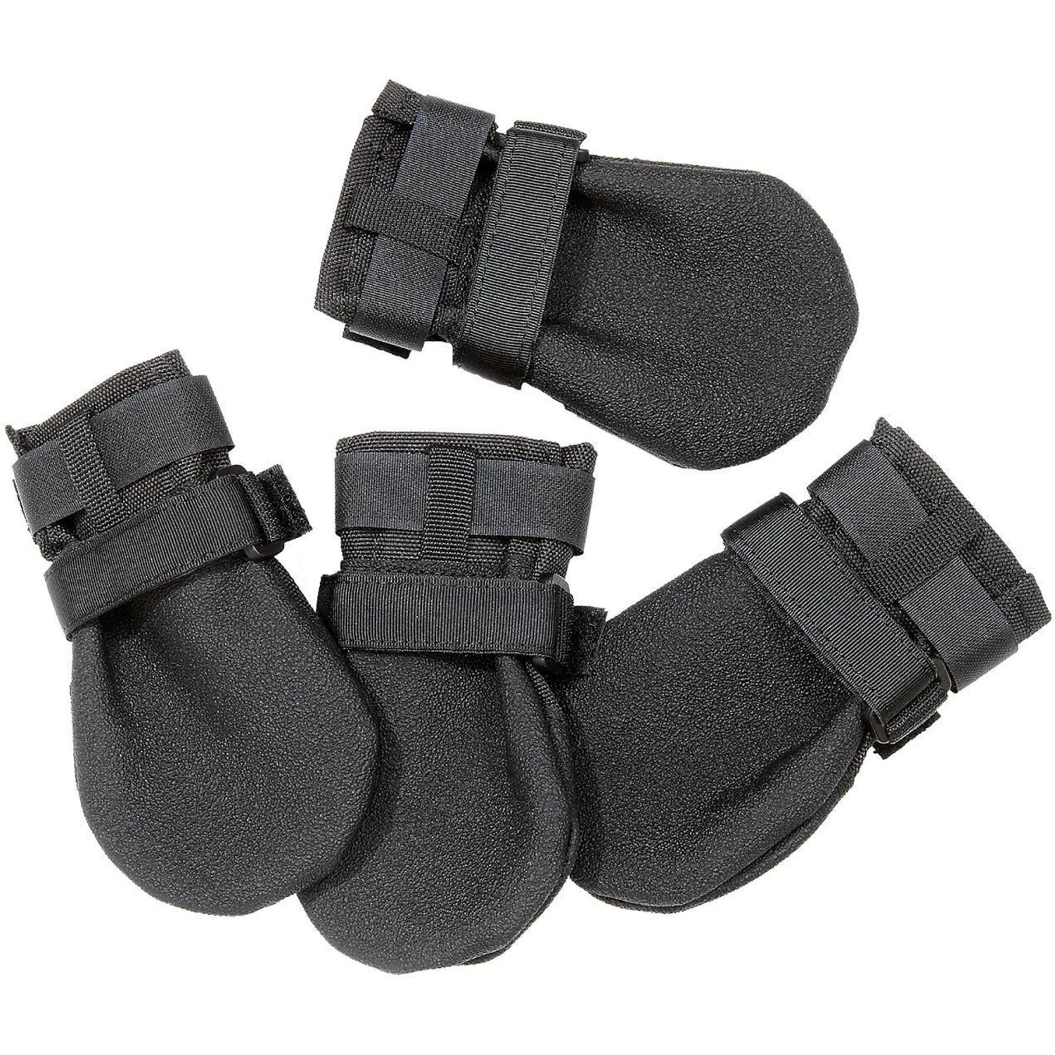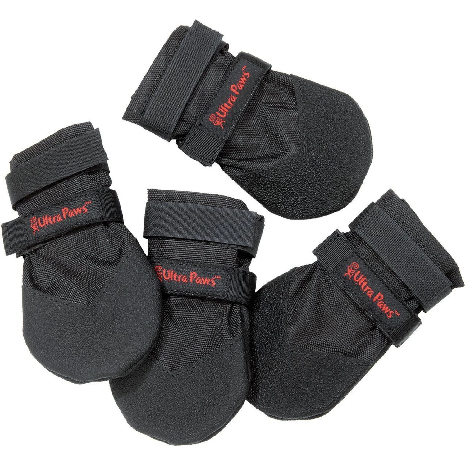 Ultra Paws Durable Dog Boots, 4 count, X-Large — Remember to measure your pet for the paw-fect fit. Protect your parading pooch’s sensitive paws with Ultra Paws Durable Dog Boots. Made from water-resistant nylon, this patented design is the perfect all-purpose boot to keep your furry friend’s feet safe in wet or dry, hot or cold conditions. The toe and sole are coated in ToughTek—a grippy, flexible and skid-resistant thermoplastic—that’s extra durable and ideally suited to help older dogs and those with hip issues maintain traction on hardwood and tile floors. The split-seam upper shafts make these high-quality boots easy to get on and off, while the dual fuzzy fastener straps and foam ankle pads provide a snug fit with unmatched comfort.