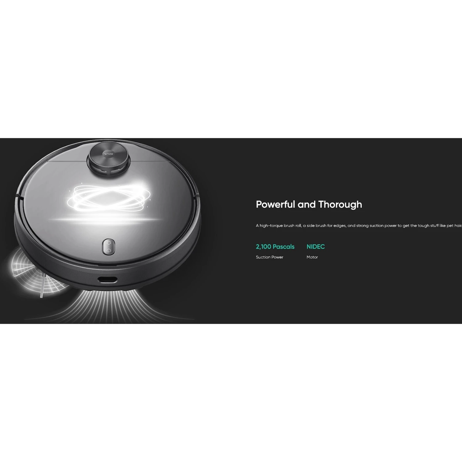 - Using laser navigation, the robot vacuum divides rooms into sections and moves around in straight lines for the most efficient path.